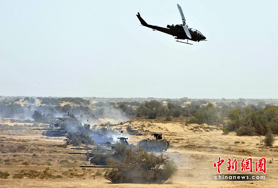 巴基斯坦軍隊4月18日出動戰(zhàn)機、坦克和重型火炮,在靠近印度邊界的東部沙漠地區(qū)舉行“新決心—3”軍事演習。圖片來源:中國新聞網(wǎng)