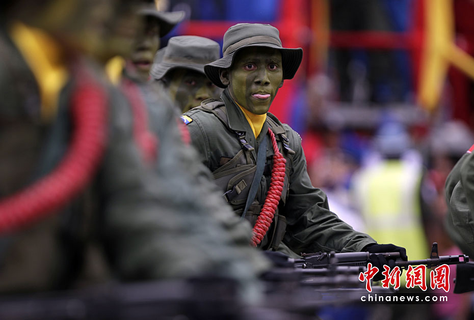 委內(nèi)瑞拉首都加拉加斯19日舉行盛大游行活動(dòng),紀(jì)念反殖民統(tǒng)治爭取獨(dú)立的斗爭開始200周年。圖片來源:中國新聞網(wǎng)