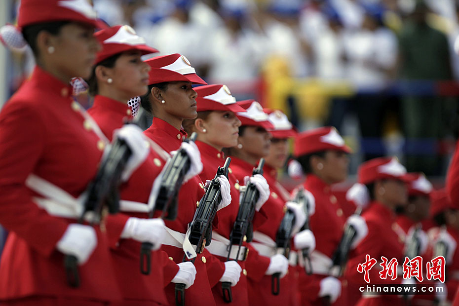 委內(nèi)瑞拉首都加拉加斯19日舉行盛大游行活動,紀念反殖民統(tǒng)治爭取獨立的斗爭開始200周年。圖片來源:中國新聞網(wǎng)