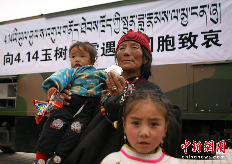 4月21日,為表達全國各族人民對青海玉樹地震遇難同胞的深切哀悼,舉行全國哀悼活動。玉樹的悼念活動在結(jié)古鎮(zhèn)舉行,在玉樹體育場、賽馬場、格薩爾廣場等安置點,當(dāng)?shù)孛癖姾途仍筷犠园l(fā)舉行哀悼活動。中新社發(fā) 劉忠俊 攝