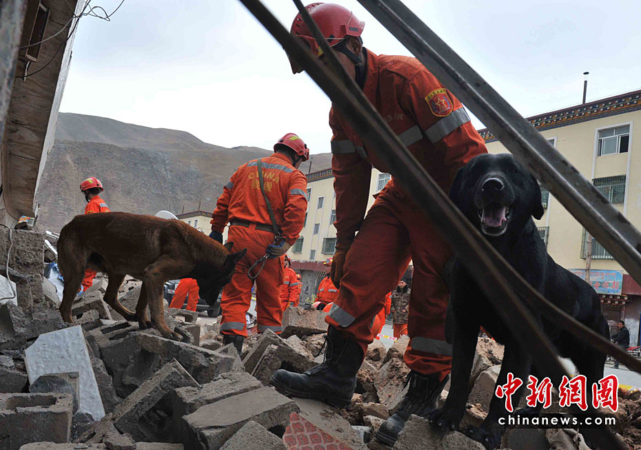 搜救犬黑貝玉樹地震廢墟上的一個(gè)清晨