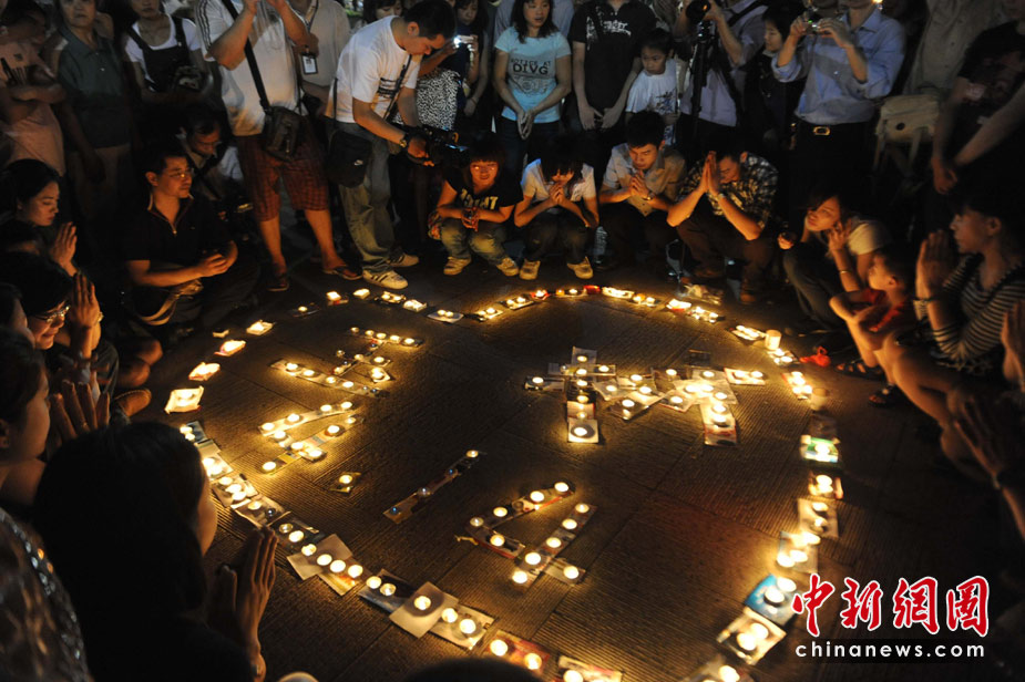 4月21日晚,上千名廣西壯族自治區(qū)首府南寧市的市民,聚集在南寧市民族廣場,哀悼玉樹地震的死難同胞。中新社發(fā) 蔣雪林 攝