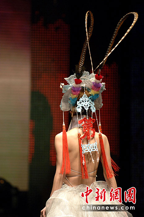 4月20日晚,首屆海西國際時裝周在福建石獅閉幕,本屆時裝周吸引了來自海峽兩岸的紡織服裝界企業(yè)家和知名服裝設(shè)計(jì)師。期間舉辦了12場時裝品牌和設(shè)計(jì)師作品動態(tài)發(fā)布會。圖為模特展示古今潮流結(jié)合的服裝。王東明 攝