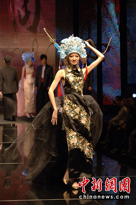 4月20日晚,首屆海西國(guó)際時(shí)裝周在福建石獅閉幕,本屆時(shí)裝周吸引了來自海峽兩岸的紡織服裝界企業(yè)家和知名服裝設(shè)計(jì)師。期間舉辦了12場(chǎng)時(shí)裝品牌和設(shè)計(jì)師作品動(dòng)態(tài)發(fā)布會(huì)。圖為模特展示古今潮流結(jié)合的服裝。王東明 攝