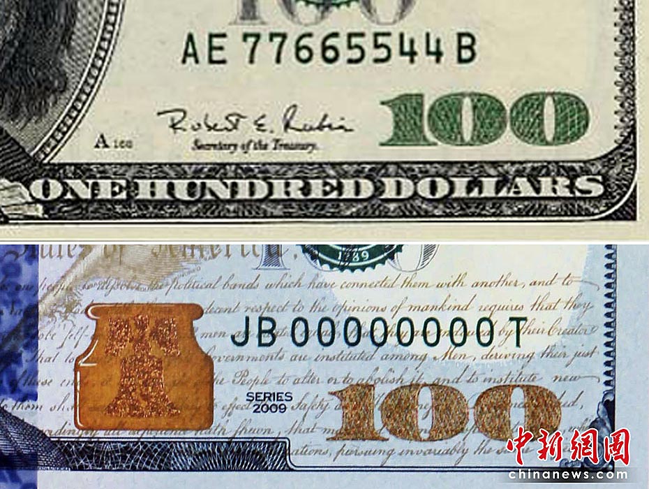 4月21日,美國財政部和美聯(lián)儲共同發(fā)布新版100美元面值的紙幣票樣。此次發(fā)行新版百元美鈔旨在防范假鈔,同時,老版美元仍將繼續(xù)流通。圖片來源:中國新聞網(wǎng)