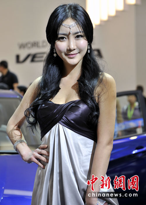 “第十一屆北京國際車展”是名車新品搶先亮相的舞臺,也成了車模們爭奇斗艷的場所,參觀者在車展中可以享受兩道視覺大餐。中新網(wǎng)記者 金碩 攝