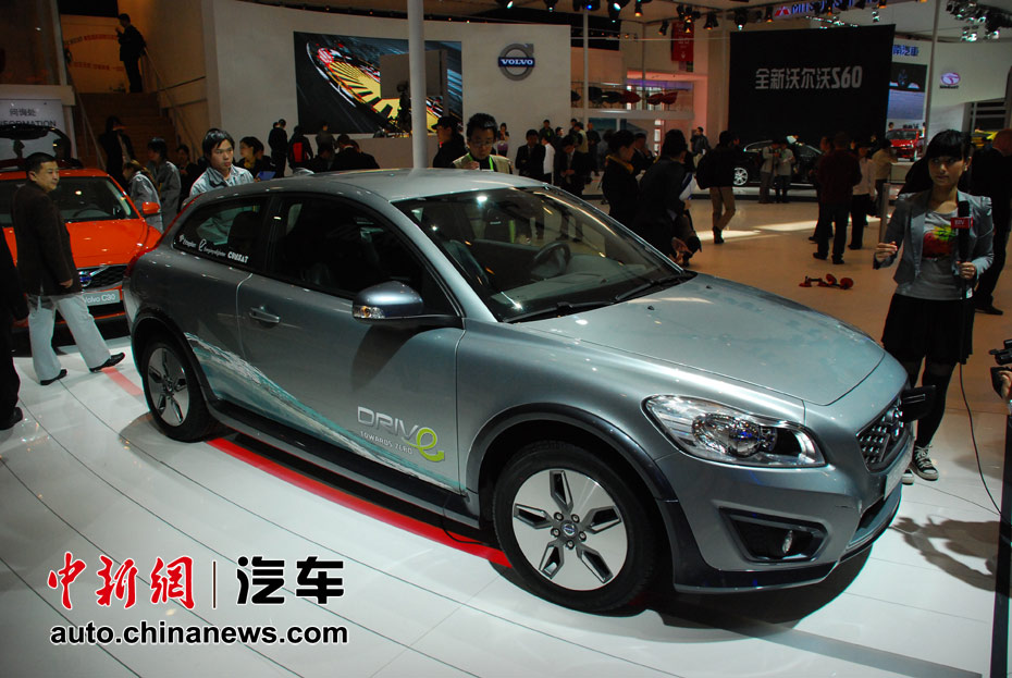 第十一屆北京國(guó)際車展23日開幕,在本屆以“暢想綠色未來(lái)”為主題的車展上,新能源車成為最大亮點(diǎn)。圖為沃爾沃C30電動(dòng)車 王槊 攝