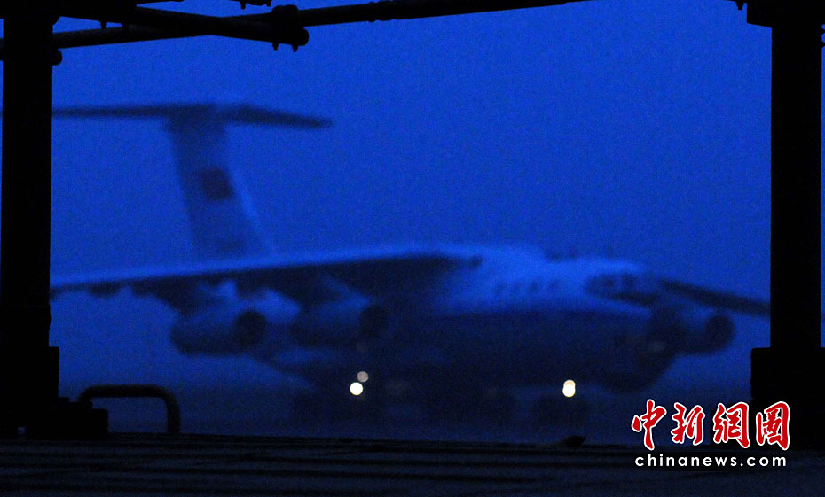 4月18日清晨6時 (賈國榮)天蒙蒙亮,中新社和中新網(wǎng)從北京增援采訪青海玉樹7.1級強烈地震的記者組,趕赴到成都某空軍機場,搭乘中國空軍伊爾-76重型運輸機037機群呼嘯起飛。
