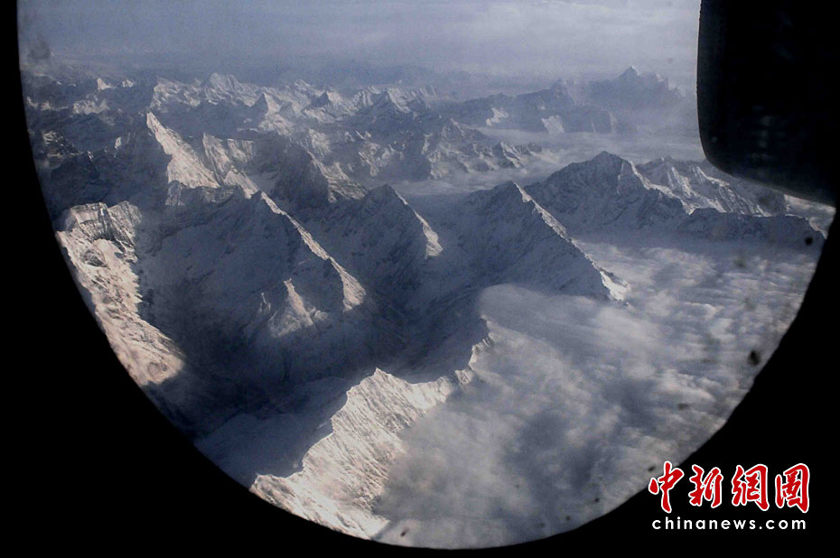 曙光里,機(jī)群飛越當(dāng)年紅軍長征爬過的瀘定大雪山,在連綿的雪峰上隆隆飛翔,這是編織連接玉樹災(zāi)區(qū)救生航空網(wǎng)絡(luò)中,最重要堅實的緊急救災(zāi)航線。