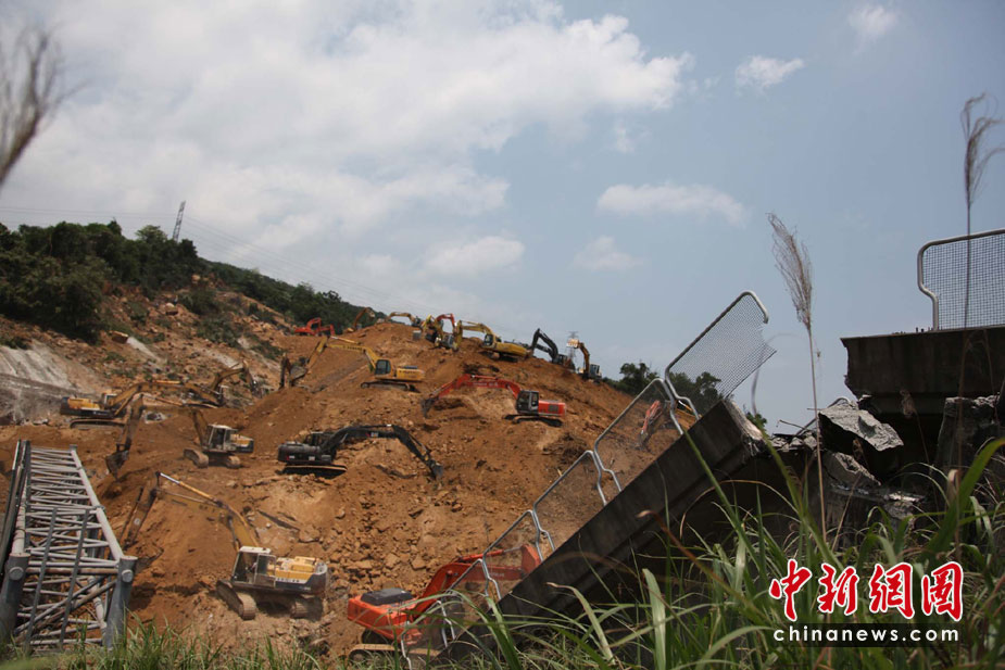 4月26日,臺灣“北二高”基隆段山崩斷橋意外第2天,大批工程人員使用近50臺怪手持續(xù)開挖,但尚未尋獲被埋的車輛和失蹤者。這起“走山”斷橋意外發(fā)生在25日,一座高百米的山坡全然崩坍,土石覆蓋道路長約200米、面積達(dá)3個足球場之大,令南下北上的交通大受影響。 董會峰 攝