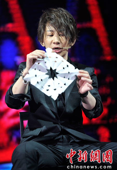 4月25日,由《時尚芭莎》雜志社主辦的第8屆“BAZAAR明星慈善夜”活動在上海舉行,圖為劉謙為現(xiàn)場嘉賓表演精彩炫目的魔術。 中新網(wǎng)記者 金碩 攝