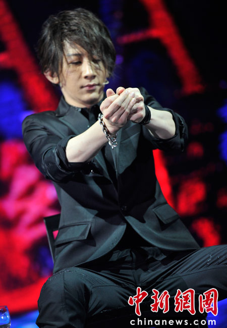 4月25日,由《時尚芭莎》雜志社主辦的第8屆“BAZAAR明星慈善夜”活動在上海舉行,圖為劉謙為現(xiàn)場嘉賓表演精彩炫目的魔術(shù)。 中新網(wǎng)記者 金碩 攝