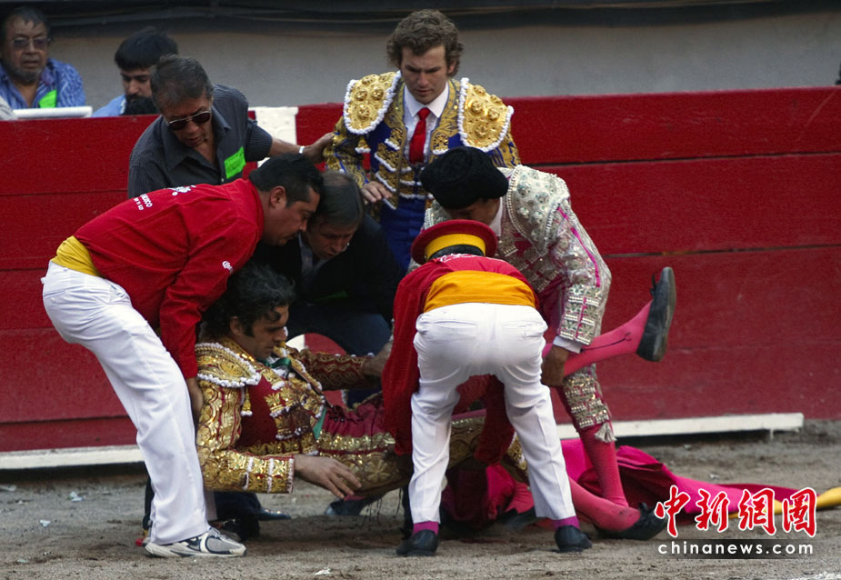 24日,西班牙知名斗牛士何塞·托馬斯在墨西哥斗牛時(shí)遭一頭公牛頂傷,神志不清。