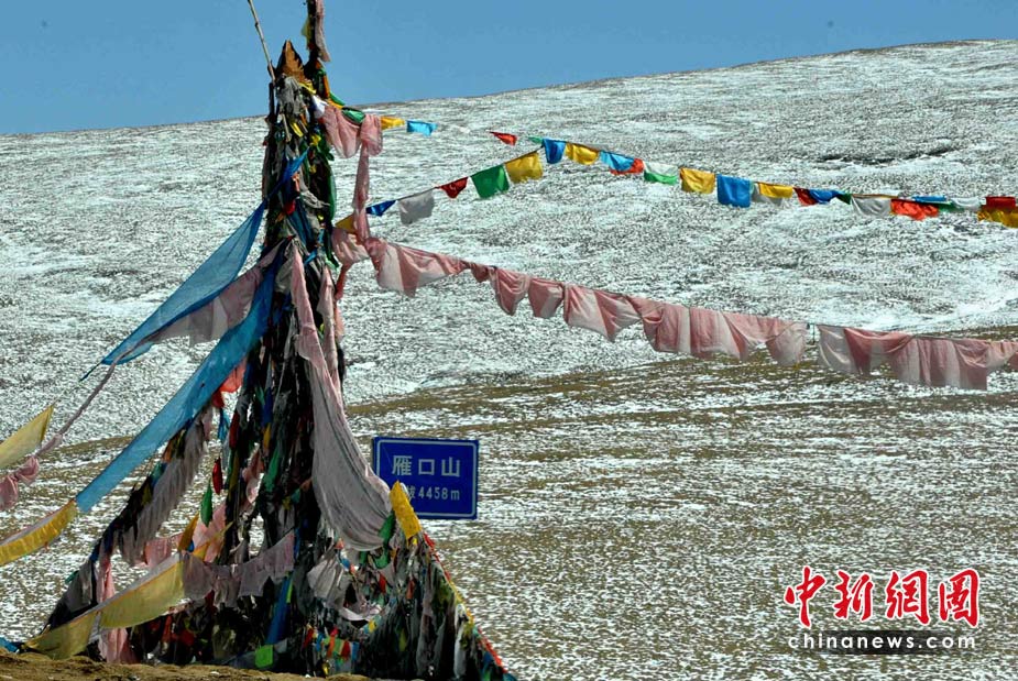 屬于長(zhǎng)江、黃河、瀾滄江三江源地區(qū)的青海玉樹地震災(zāi)區(qū),自然保護(hù)區(qū)的18個(gè)核心區(qū)域中,有10個(gè)位于玉樹州境內(nèi),占總面積的72%。4月下旬,記者深入災(zāi)區(qū)縱深各地,災(zāi)后重建正面臨保護(hù)生態(tài)環(huán)境、為三江源建起一道生態(tài)屏障的難題;近日緊迫的防疫工作,必須使用滅菌效果好、對(duì)環(huán)境無(wú)污染的消毒劑。圖為高原山口的經(jīng)幡依舊。中新社記者 賈國(guó)榮攝