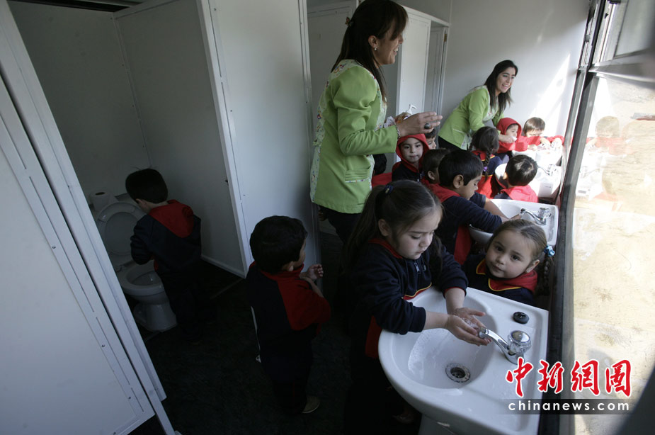 4月26日,今年2月遭受8.8級強烈地震的智利康塞普西翁市,兒童們在“巴士學(xué)校”里上課。