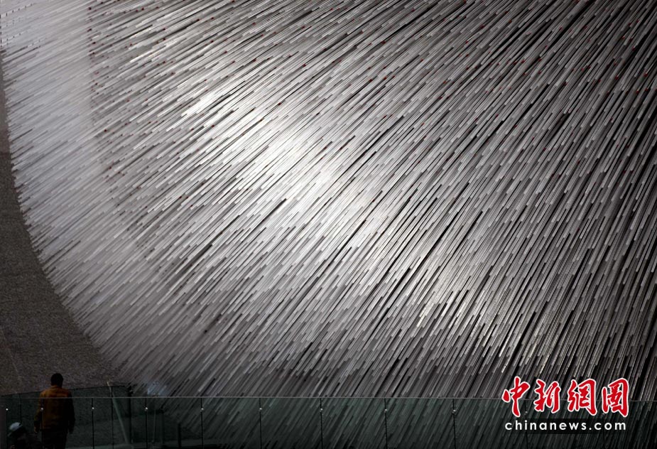 4月27日,上海世博園英國(guó)館,工人抓緊維護(hù)展館設(shè)施。中新社發(fā) 盛佳鵬 攝
