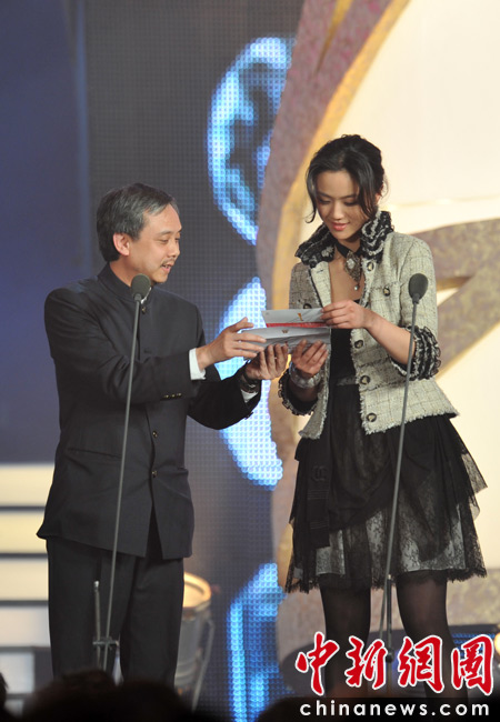 4月28日,第十屆電影頻道數(shù)字電影百合獎頒獎典禮舉行。湯唯攜手陳嘉上成為頒獎嘉賓為優(yōu)秀男演員頒獎。呂聿來、王景春獲得優(yōu)秀男演員將,優(yōu)秀女演員被吳越、董玲搬走。 中新網(wǎng)記者 金碩 攝