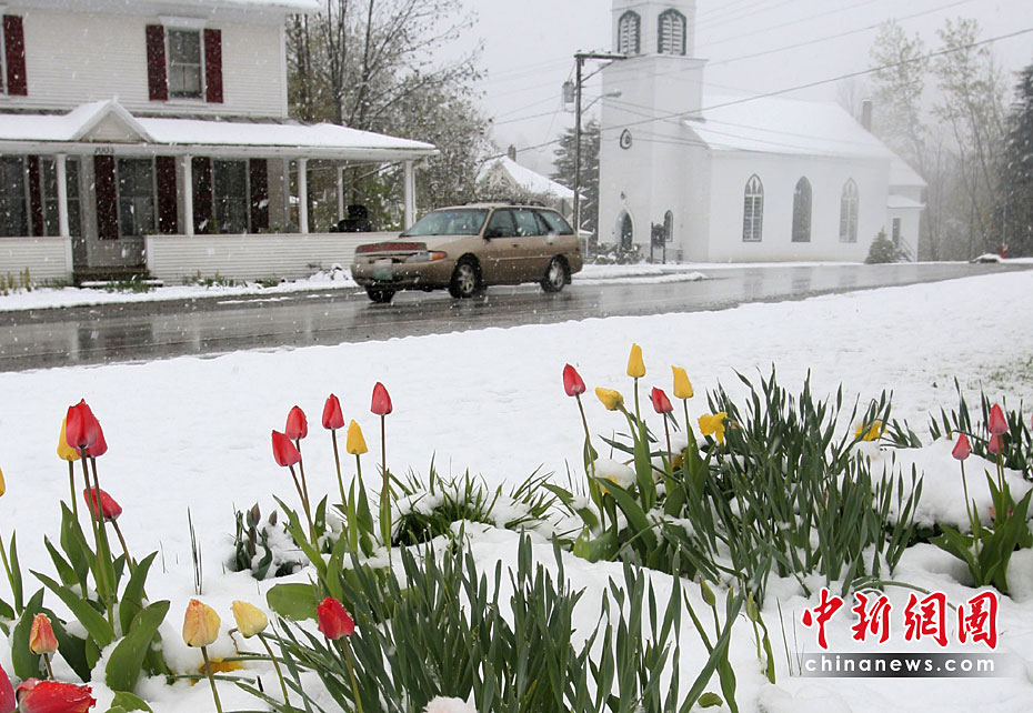 當(dāng)?shù)貢r(shí)間4月28日,美國(guó)佛蒙特州部分地區(qū)遭大雪襲擊。這場(chǎng)大雪給人們的出行帶來(lái)不便。圖片來(lái)源:中國(guó)新聞網(wǎng)