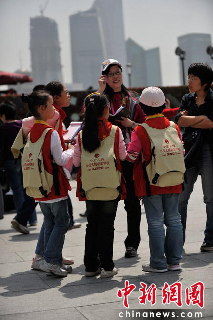 30日上午,記者在上海外灘采訪時遇到小主人報新聞學(xué)校的“小記者”們在采訪,成為他們今天的第一個采訪對象。“小記者”們最關(guān)心的問題是關(guān)于世博會,“如何讓世界變得更美好”。她們都表示非常想去看世博會,最想看的是中國館,但是要留到最后看,“因?yàn)槠渌^都會拆掉,中國館會保留下來”。“小記者”們說,自己要從身邊小事做起,做有文明有素質(zhì)的人,并表示希望自己將來成為真正的“大記者”,更好地報道上海。吳歆/文 王紅綱/圖