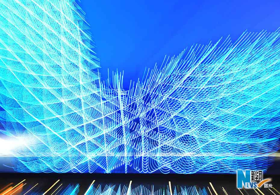 夜色下的世博園,迷離而夢(mèng)幻。圖為世博軸陽(yáng)光谷。圖片來源:新華網(wǎng) 郭毅攝