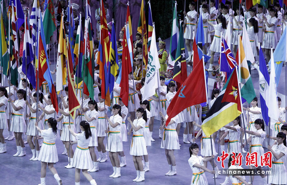 4月30日,中國2010年上海世博會開幕式在上海世博園世博文化中心舉行。圖為參展方旗幟方隊(duì)入場。中新社發(fā) 湯彥俊 攝