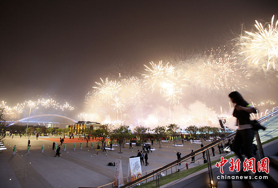4月30日晚,2010年上海世博會(huì)開幕式在上海世博園世博文化中心舉行。21時(shí)28分,世博會(huì)焰火燈光表演開始。黃浦江兩岸綿延3.28公里同時(shí)奏響火樹銀花不夜天的華彩世博樂章。圖片來源:中國新聞網(wǎng)