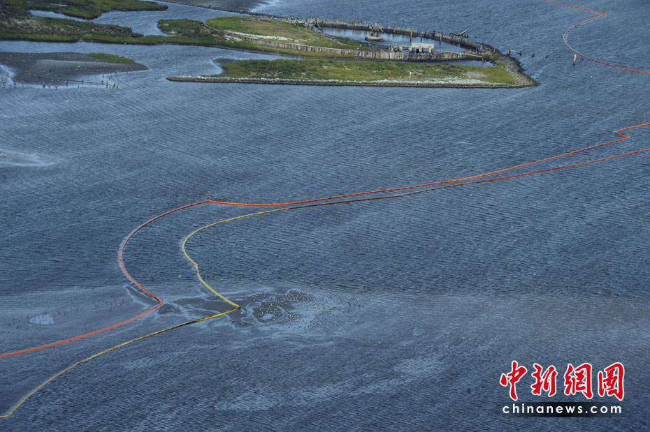 4月30日,在美國路易斯安那州海岸,為阻隔原油擴(kuò)散而設(shè)的護(hù)欄帶被海風(fēng)浪沖到岸邊。當(dāng)天,美國總統(tǒng)奧巴馬下令調(diào)查墨西哥灣石油鉆井平臺爆炸事件,以避免將來類似事件再次發(fā)生。平臺爆炸沉沒后泄漏的原油當(dāng)天已漂至美國沿岸。圖片來源:中國新聞網(wǎng)