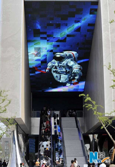 5月1日,上海世博會正式開園迎客,首批游客入園參觀。眾多游客前往位于上海世博園浦西園區(qū)的太空家園館參觀。 朱崢 攝