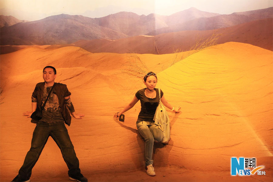 5月1日,上海世博會正式開園迎客,首批游客入園參觀。游客在阿曼館內(nèi)拍照。李明放攝