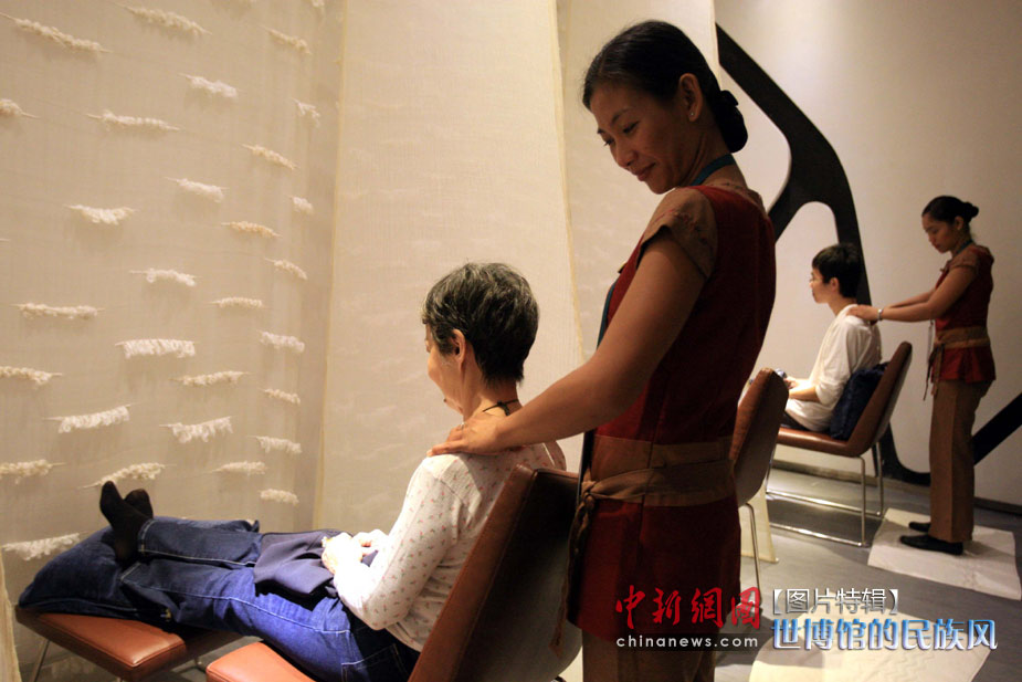 5月1日,上海世博會(huì)菲律賓館開館,其館內(nèi)設(shè)置的傳統(tǒng)按摩深受參觀者歡迎,一早便預(yù)約完畢。中新社發(fā) 潘索菲 攝