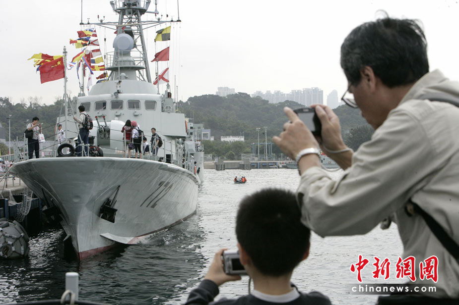 為慶祝“五一”國際勞動(dòng)節(jié),進(jìn)一步增進(jìn)與香港社會(huì)各界相互溝通與交流,中國人民解放軍駐香港部隊(duì)5月1日在昂船洲軍營舉辦開放日活動(dòng),開放兩艘導(dǎo)護(hù)艇和兩艘登陸艇供市民自由參觀。中新社發(fā) 張勤 攝