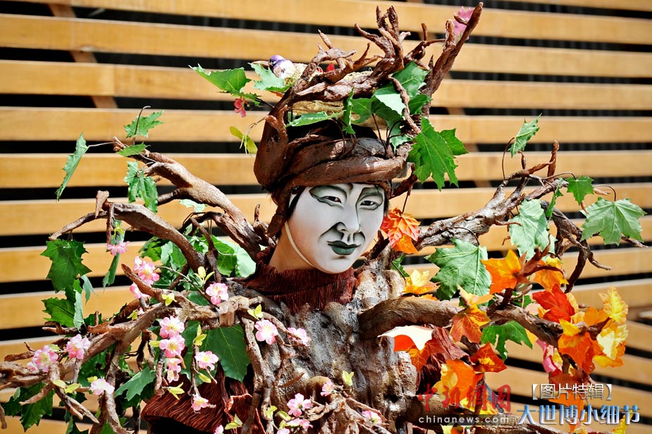 5月1日,上海世博會正式開園,當日有20萬人次的游客參觀了世博園。世博首日,許許多多的小細節(jié)都帶給人一種全新的體驗。圖為在加拿大館一位扮作大樹的表演者。