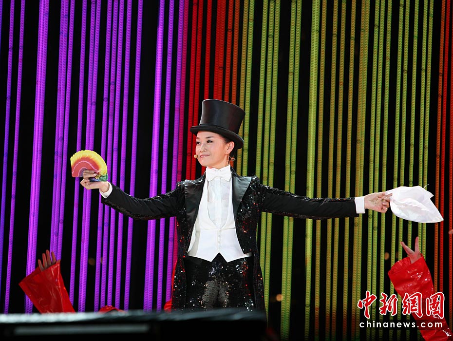 圖為宋祖英女扮男裝表演魔術(shù)。王保勝 攝
