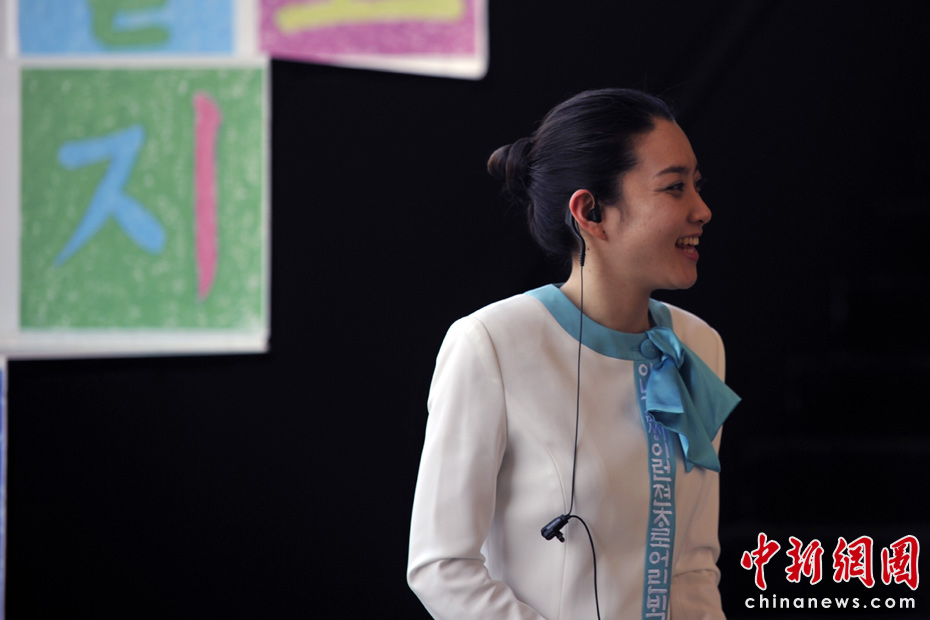 另外韓國館里的另一道風景是溫柔美麗的禮儀小姐。中新網(wǎng)記者 王紅綱 攝