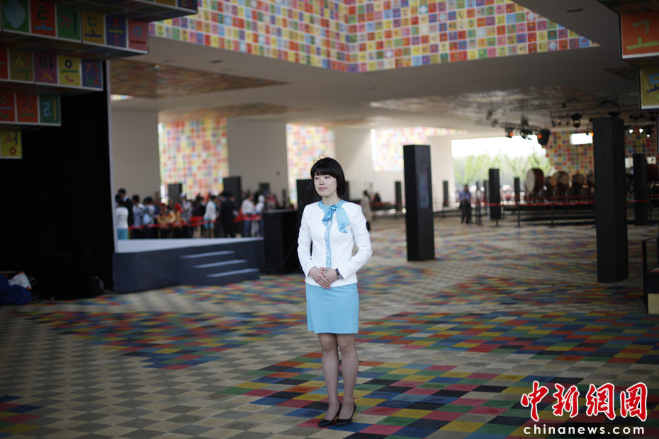 溫柔美麗的韓國館禮儀小姐。中新網(wǎng)記者 盛佳鵬 攝