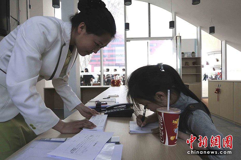 5月2日清晨,7歲的林姝彤小朋友剛跟著伯伯嬸嬸進(jìn)入上海世博園,就在亂哄哄的人流中走丟了,志愿者把她領(lǐng)到走失兒童認(rèn)領(lǐng)處。服務(wù)小姐在詢問她的姓名等關(guān)鍵詞之后,會立即廣播尋人啟示。結(jié)果,她很快就和親人團(tuán)圓了。中新社記者 賈國榮 攝