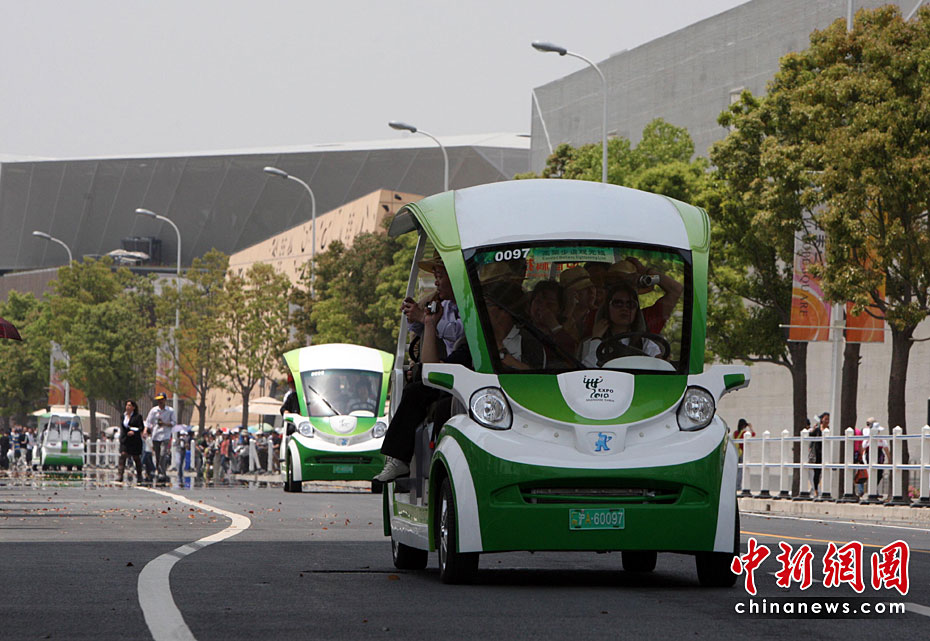 5月2日,上海世博會(huì)是第一個(gè)正式提出“低碳世博”理念的世博會(huì),圍繞著這樣的理念,上海世博園區(qū)內(nèi)的低碳元素比比皆是。圖為世博園區(qū)有幾百輛零排放的燃料電池汽車向游客提供服務(wù)。中新社發(fā) 湯彥俊 攝