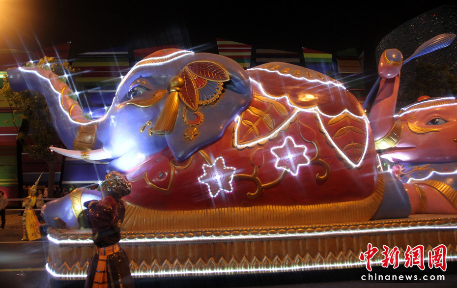 5月2日晚,由一輛輛充滿異域風情的花車和身著盛裝的表演者組成的“歡樂盛裝大巡游”在世博園區(qū)舉行。中新網(wǎng)記者 蘇丹 攝