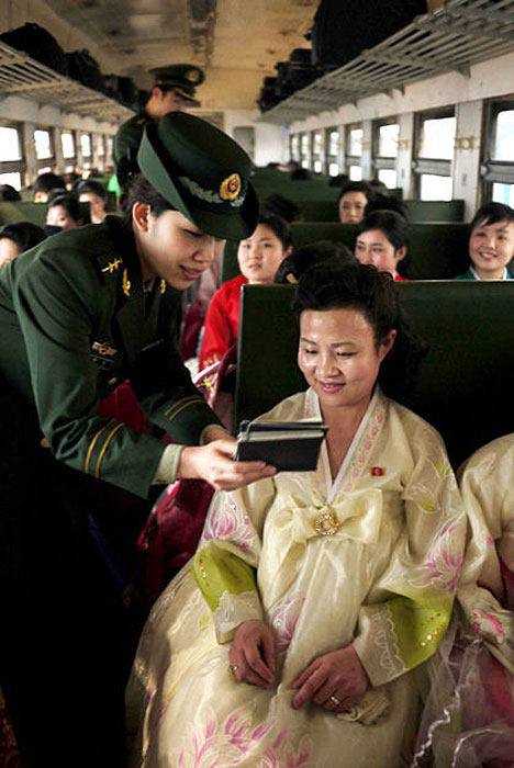 5月2日,載著198名朝鮮紅樓夢劇組演員的專列駛?cè)氲|口岸。由朝鮮國家級藝術(shù)團(tuán)-血海歌劇團(tuán)創(chuàng)作的歌舞劇《紅樓夢》將于5月6日至9日登陸北京電視臺(tái)大劇院,這個(gè)超大演員陣容亦創(chuàng)下近年來華國外演出人數(shù)之最。圖片來源:新華網(wǎng)