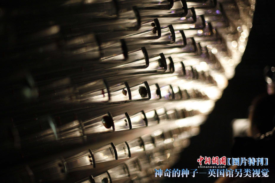 上海世博園開(kāi)園才數(shù)日,自號(hào)“種子圣殿”的英國(guó)館已成人氣最旺場(chǎng)館之一。該館由6萬(wàn)根亞克力桿巧妙構(gòu)成,隨風(fēng)搖動(dòng),頗為新奇。其每根桿子里都含有植物種子。中新社記者 盛佳鵬 攝