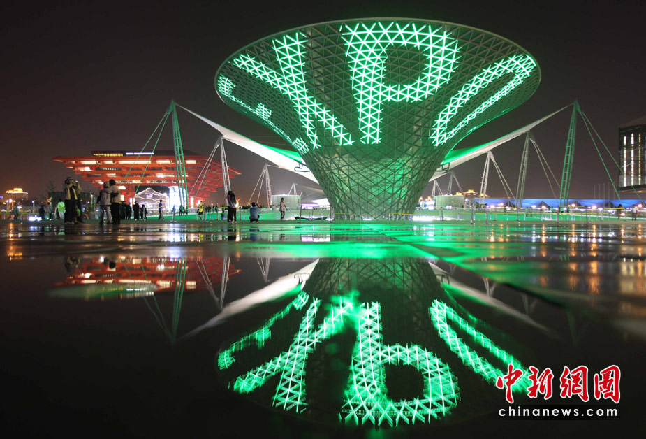 夜幕下的上海世博園區(qū)處處流露光華與璀璨,世博軸上的“陽光谷”成為一個個流光溢彩的“夜光杯”,以不同色調交織成流動的光影旋律,給游客們帶來難以忘懷的感受。圖為世博軸“陽光谷”與中國館的燈光交相輝映,“陽光谷”上打出世博會的英文簡稱。中新社發(fā) 宗金柱 攝
