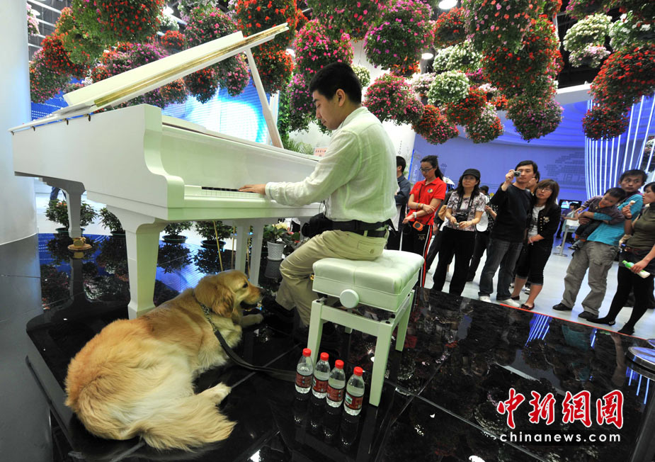 5月4日是上海世博會(huì)第四天,盲人鋼琴家孫巖在生命陽(yáng)光館專(zhuān)設(shè)區(qū)域?yàn)楸姸鄽埣踩撕陀^(guān)眾演奏,導(dǎo)盲犬靜臥在他的腳邊,這是世博會(huì)歷史上第一次為殘疾人設(shè)館。孫巖2005年獲得“日本橫濱第一屆國(guó)際殘疾人鋼琴比賽”金獎(jiǎng),他是中央音樂(lè)學(xué)院有史以來(lái)第一位盲人大學(xué)生和研究生。他的傾情演奏感動(dòng)全場(chǎng),掌聲連連。中新社發(fā) 賈國(guó)榮 攝