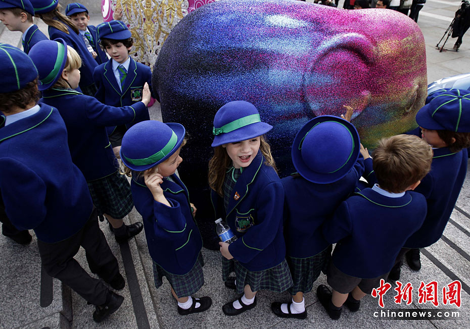 5月4日,2010年倫敦大象游行活動(dòng)當(dāng)日在特拉法爾加廣場(chǎng)啟動(dòng)。260個(gè)真象大小的彩繪雕塑將在倫敦各處展出,并將于6月30日拍賣為慈善組織籌款。圖片來源:中國(guó)新聞網(wǎng)