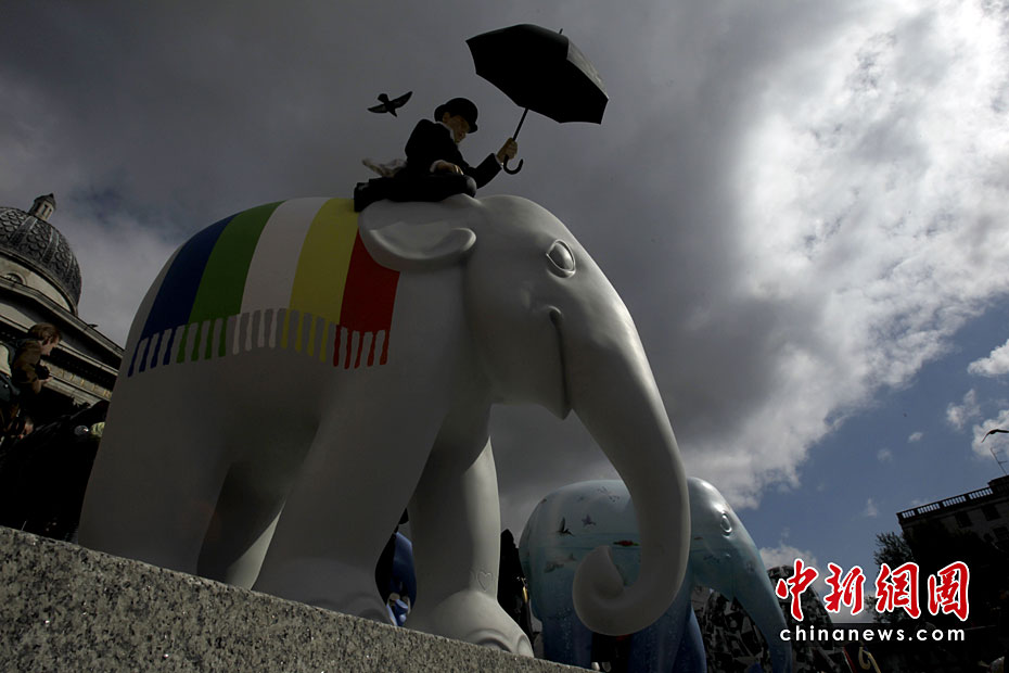 5月4日,2010年倫敦大象游行活動(dòng)當(dāng)日在特拉法爾加廣場(chǎng)啟動(dòng)。260個(gè)真象大小的彩繪雕塑將在倫敦各處展出,并將于6月30日拍賣(mài)為慈善組織籌款。圖片來(lái)源:中國(guó)新聞網(wǎng)