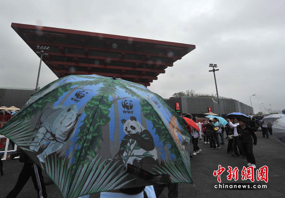 5月5日,上海世博會迎來開園五天來首個春雨天,雨中的中國館依然是游客參觀的最愛。中新社記者 賈國榮攝