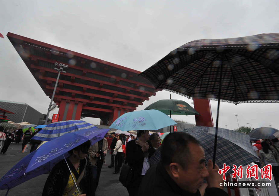 5月5日,上海世博會迎來開園五天來首個春雨天,雨中的中國館依然是游客參觀的最愛。中新社記者 賈國榮攝