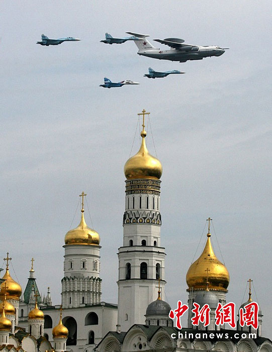 當(dāng)?shù)貢r(shí)間5月4日,在俄羅斯首都莫斯科,參加彩排的戰(zhàn)機(jī)編隊(duì)飛過(guò)紅場(chǎng)上空。俄羅斯將于5月9日隆重紀(jì)念衛(wèi)國(guó)戰(zhàn)爭(zhēng)勝利65周年。圖片來(lái)源:中國(guó)新聞網(wǎng)