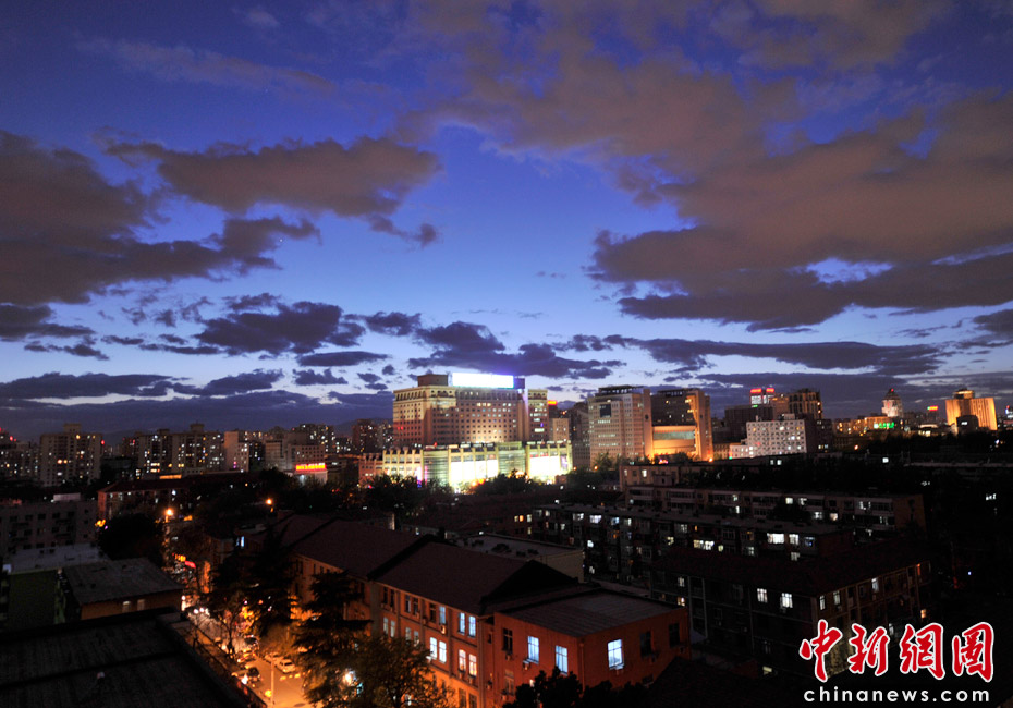 5月5日立夏,京城降雨今晨剛剛結(jié)束,霧氣伺機(jī)又起。傍晚時分,隨著四級北風(fēng)的到來,京城天氣逐漸轉(zhuǎn)晴,霧氣慢慢消散天空彤云密布夜色瑰麗。中新網(wǎng)記者 金碩 攝