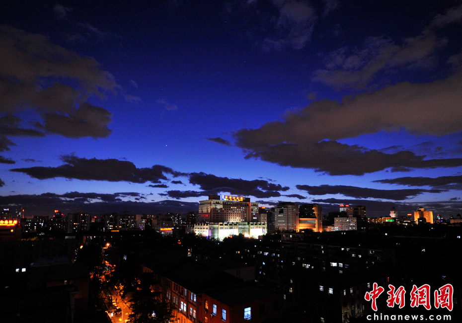 5月5日立夏,京城降雨今晨剛剛結束,霧氣伺機又起。傍晚時分,隨著四級北風的到來,京城天氣逐漸轉晴,霧氣慢慢消散天空彤云密布夜色瑰麗。中新網記者 金碩 攝