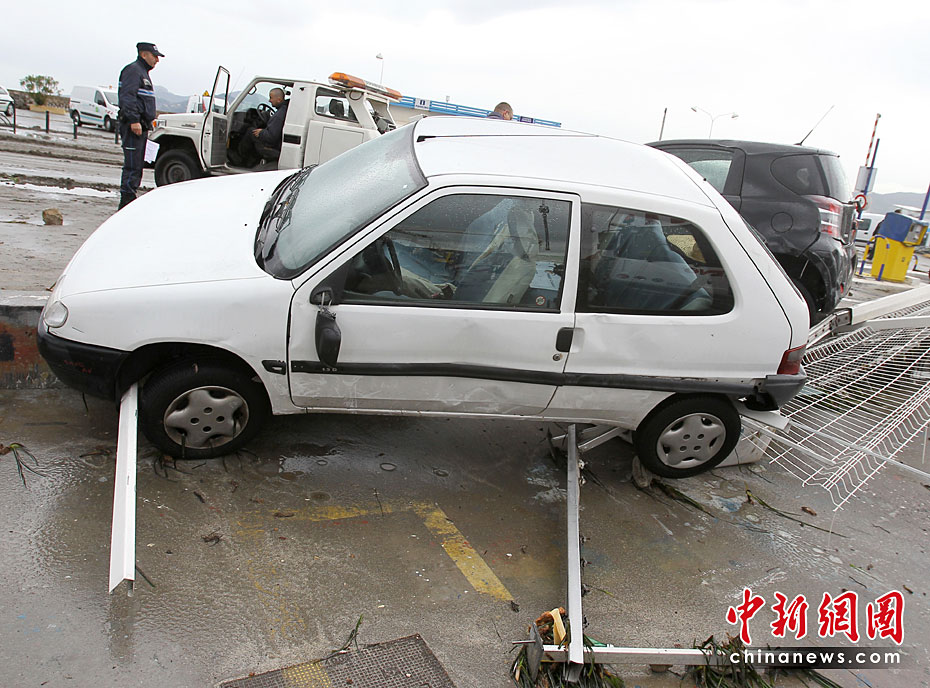 近日,在法國南部城市尼斯,巨浪襲擊城市的海岸后造成城市道路癱瘓。法國南部部分地區(qū)遭遇大風和巨浪,使當?shù)亟煌ê凸╇娛艿讲煌潭鹊挠绊。圖片來源:中國新聞網(wǎng)